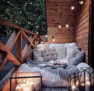 Even a small balcony can become a cozy hideaway. Use compact furniture like a folding chair or a bench with storage. Add a soft cushion, a small rug, and potted plants to create warmth. String lights or a lantern can make the space feel magical in the evening.