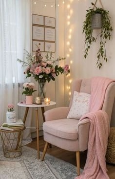 Turn an unused corner into a relaxing retreat by placing a comfortable armchair near a window or bookshelf. Add a soft throw, layered pillows, and a small side table for books or a warm drink. A floor lamp with warm lighting helps define the space and makes it perfect for reading or unwinding.
